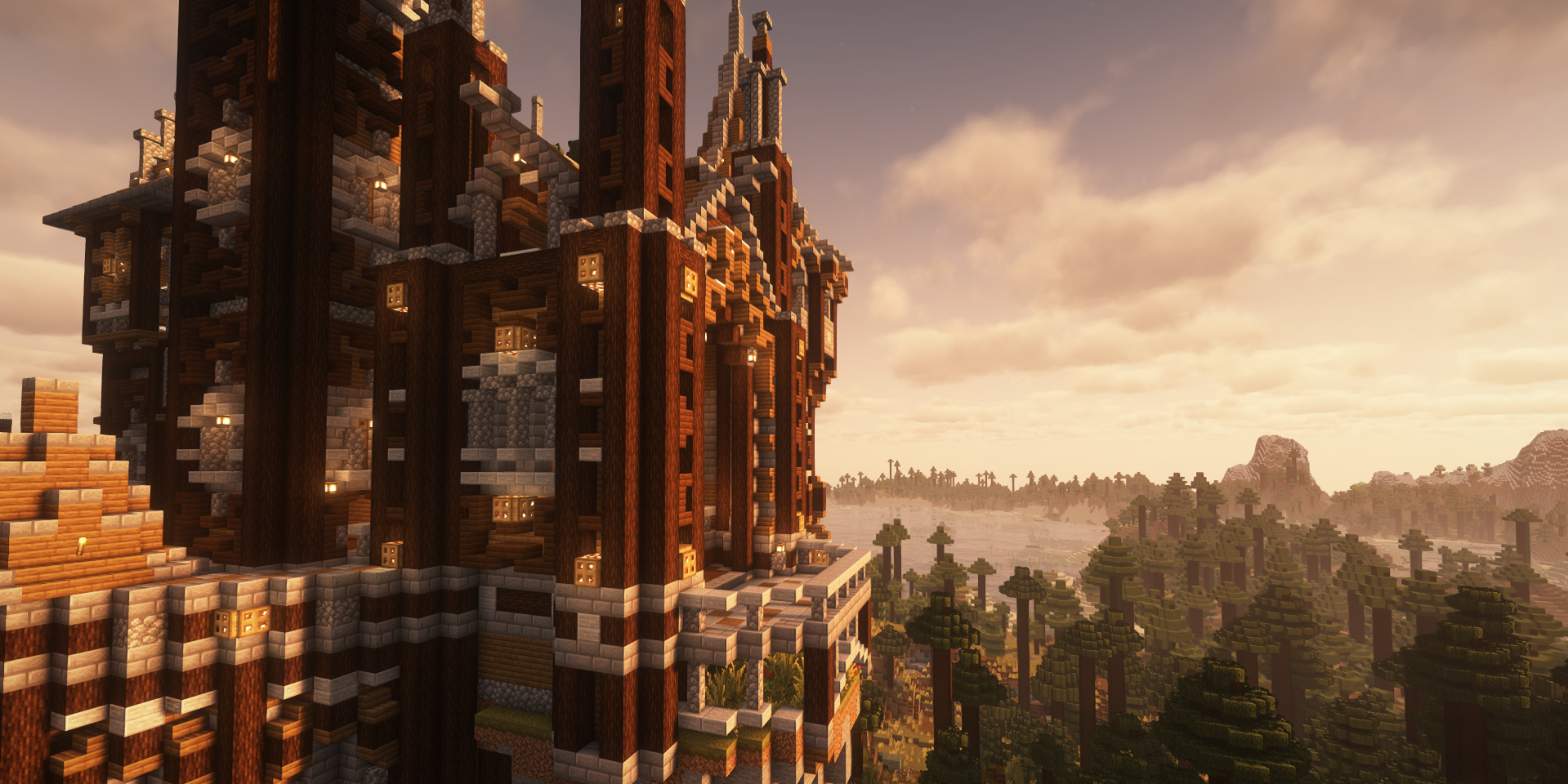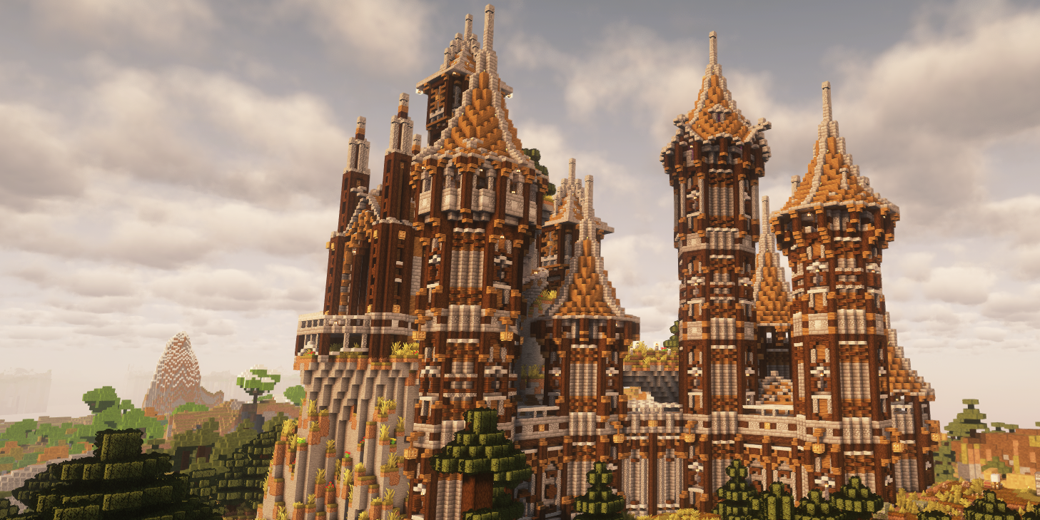 Rising proudly from the golden hills of the Craigian frontier, Windbrooke Castle stands as a marvel of craftsmanship and imagination. Built by our very own femalecowboy, Its intricate spires and sweeping roofs dominate the horizon, blending seamlessly with the surrounding taiga landscape. Built from rich spruce hues accented with polished stone, this monumental structure captures the spirit of medieval architecture while maintaining a distinctly warm and welcoming presence. From a distance, Windbrooke feels like something out of legend.
